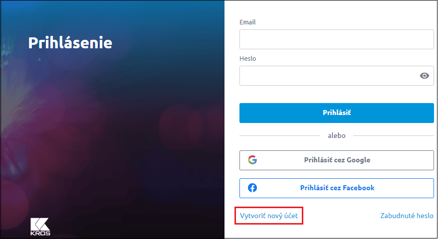 Ak ešte nemáte vytvorené konto, kliknete na tlačidlo Vytvoriť nový účet.