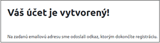Po zadaní prihlasovacích údajov na používanie KROS účtu (Email a Heslo) sa zobrazí hláška o vytvorení účtu.