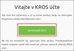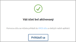 Po aktivácii účtu (kliknutím na tlačidlo „Aktivovať účet“) budete presmerovaný na www.kros.sk/ucet-aktivovany. Následne sa môžete prihlásiť do svojho účtu.