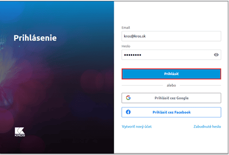 alebo cez www.kros.sk kliknutím na tlačidlo Prihlásiť sa.