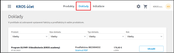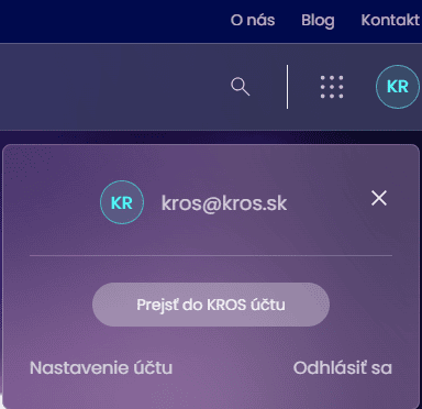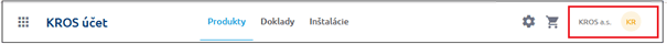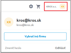 V KROS účte v pravej hornej časti vidíte názov spoločnosti, pod ktorou ste momentálne prihlásený.