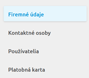 - Firemné údaje – môžete meniť údaje Vašej firmy (napr. adresa, …),