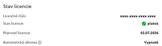 - stavu licencie (aktívna, uvoľnená, zablokovaná).