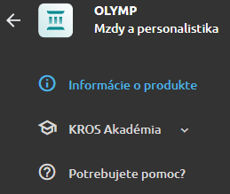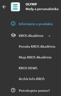 Kliknutím na „KROS Academy“ sa zobrazí nasledovná ponuka: