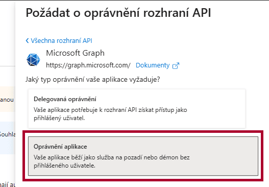 Vybrať možnosť Oprávnění aplikace (Application permissions)