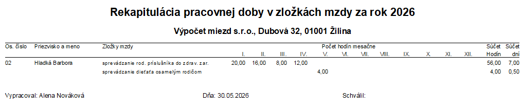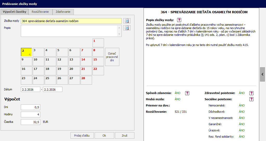Podľa nastaveného obdobia (Obdobie od – Obdobie do) program Mzdy a personalistika OLYMP vo výplate rozlíši, či má osamelý zamestnanec nárok na ďalších 7 dní v danom mesiaci generovania mzdy.