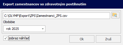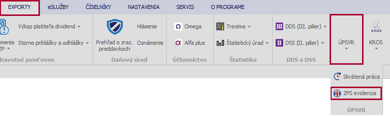V programe Mzdy a personalistika OLYMP je zapracovaný export zamestnancov so zdravotným postihnutím vo formáte csv., ktorý nájdete v menu Exporty – ÚPSVAR – ZPS Evidencia.