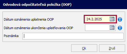 Na záložke OOP je potrebné doplniť dátum oznámenia uplatnenia OOP :