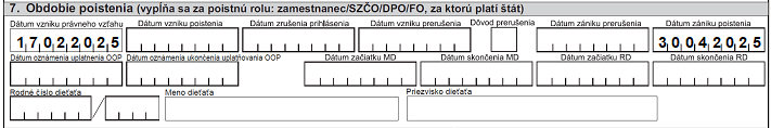 Dátum vzniku poistenia sa uvedie v RLFO prihláška s kódom 3.