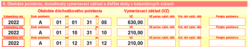Od 1. 6. 2022 sa po legislatívnej zmene na ELDP uvádzajú už len obdobia dôchodkového poistenia, kedy mal zamestnanec vymeriavací základ na dôchodkové poistenie. V našom prípade je to mesiac október a december.