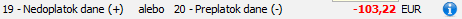 - v riadku 20 – preplatok dane vo výške 103,22 eura