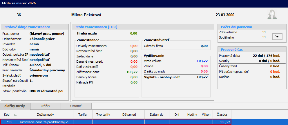 Zo mzdy vymažete zložky mzdy, ktoré sa preniesli z Personalistiky. Ponecháte iba zložku mzdy Z10 – zúčtovanie dane za predchádzajúci rok, ktorou sa prenesie do výplaty výsledok RZD.