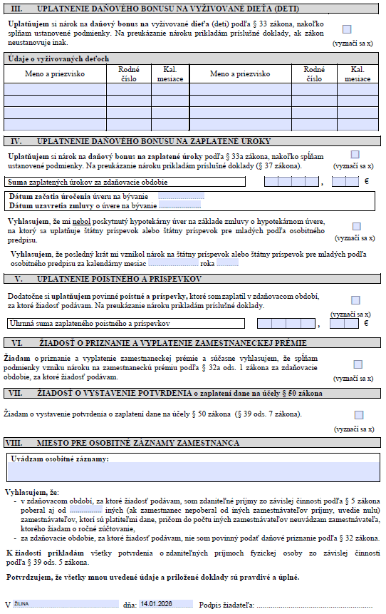 Žiadosť o vykonanie zúčtovania dane