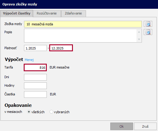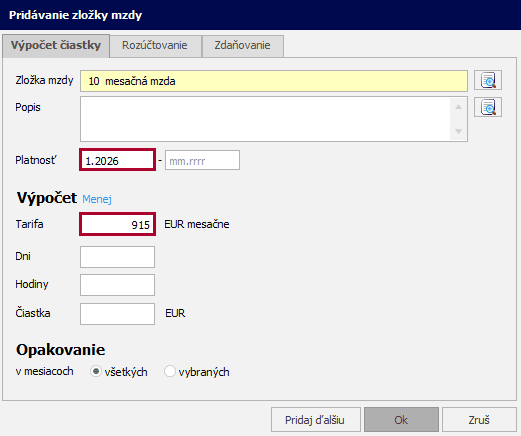 - pridáte novú zložku mzdy s tarifou platnou od 1/2026.