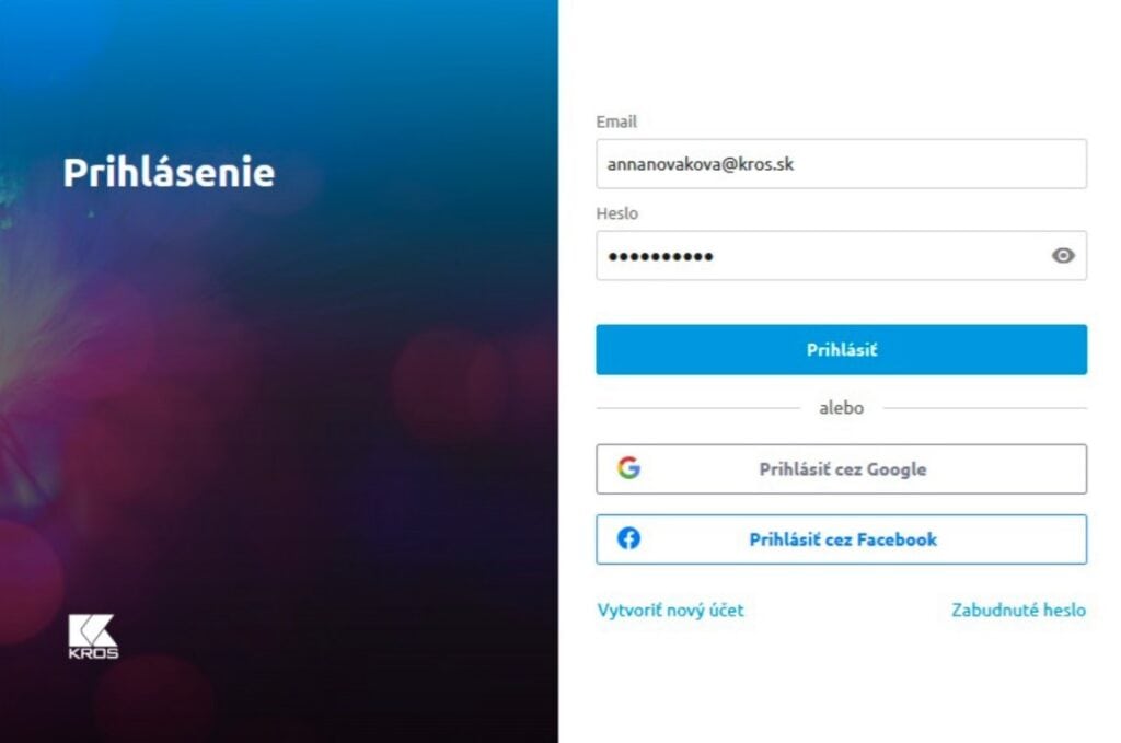 Zadáte e-mail a heslo rovnaké ako do MyJobu a prihlásite sa priamo do aplikácie KROS Personálne dokumenty.