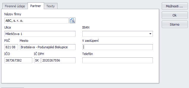 Dohodu o zápočte vytvoríme cez menu Evidencia – Dohody o zápočte pohľadávok cez tlačidlo Pridaj. V záložke Partner vyberieme partnera ABC, s.r.o., pre ktorého vytvárame dohodu o zápočte.
