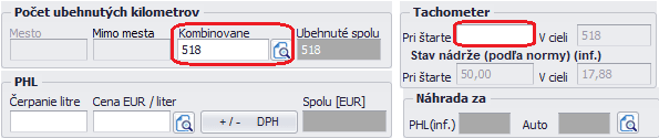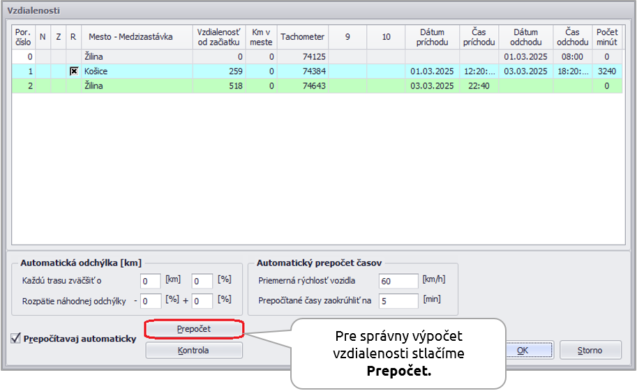 Vo formulári Vzdialenosti sú zoradené mestá pod sebou, tak ako sú zadané na jazde: Štart, Miesto rokovania a Cieľ.