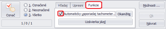 Túto funkciu nájdeme pod záložkou Funkcie v menu Evidencia – Jazdy.