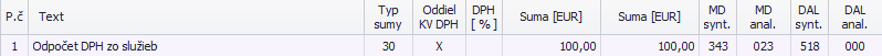 V programe Podvojné účtovníctvo OMEGA zaúčtujeme odpočet DPH pri registrácii v internom doklade automatickým účtovaním ID – Nový doklad, typ sumy 30 – R30 Odpočet dane pri registrácii §55, účtovanie 343.023/518.xxx.