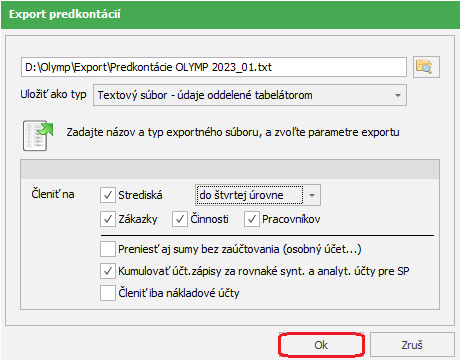 Túto potvrdíme voľbou Ok, čím ukončíme export z programu OLYMP.