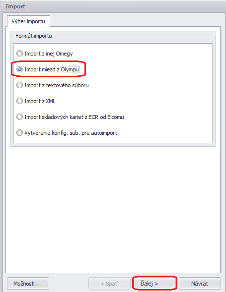 Import miezd z programu OLYMP do programu OMEGA