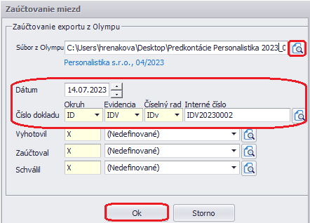 Po nájdení cesty k súboru potvrdíme Ok. Dôležitý v tomto prípade je dátum, s akým bude doklad zaúčtovaný a taktiež aj okruh, evidencia, číselný rad a interné číslo dokladu.