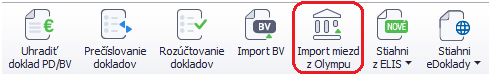 Importovať mzdy môžeme aj priamo cez Evidencia – Účtovné doklady pomocou tlačidla Import miezd z Olympu na hornej lište.