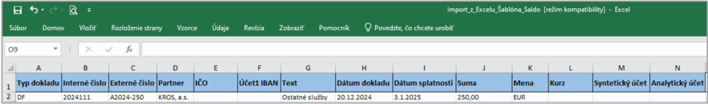 Napriek tomu, že IČO partnera nie je pre import saldokonta povinným údajom, pre správne párovanie ho odporúčame do importného súboru doplniť.