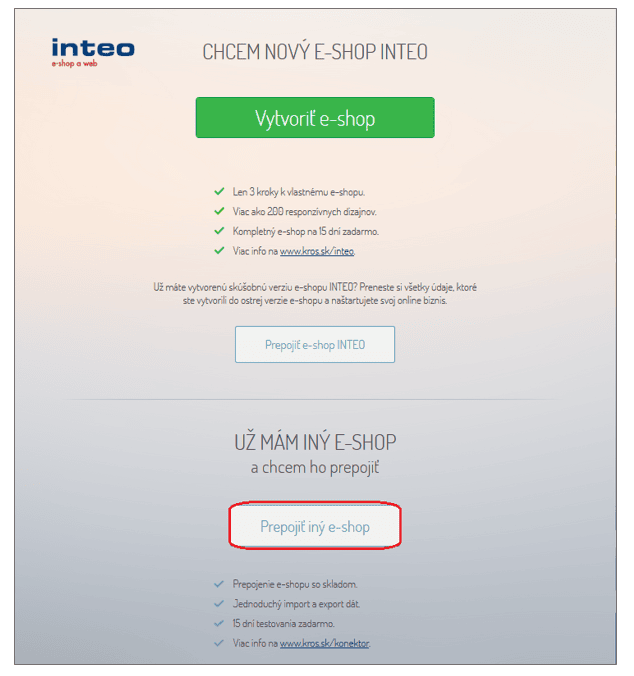 Po nastavení kritérií sa automaticky otvorí internetový prehliadač, v ktorom je potrebné vytvoriť alebo nastaviť e-shop, ktorý budeme používať.