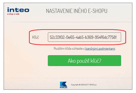 V našom prípade si zvolíme možnosť Prepojiť iný e-shop. Následne sa nám zobrazí API kľúč, ktorý zadáme do nastavení vlastného e-shopu.