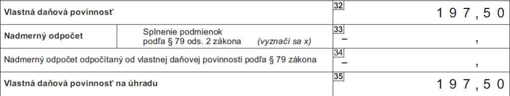 - Daňové priznanie DPH – riadok 32 – Vlastná daňová povinnosť, resp. 33 – Nadmerný odpočet.