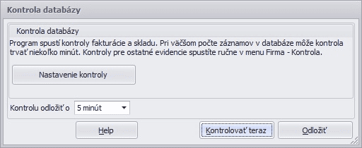 Automatické spúšťanie kontroly je v programe prednastavené pre fakturáciu a sklad a spúšťa sa raz za mesiac. Kontrola sa spustí prvému správcovi účtovníctva, ktorý sa prihlási do programu.