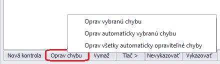 Automaticky – niektoré chyby sa dajú opraviť automaticky pomocou tlačidla Oprav chybu. Chybné záznamy môžeme opraviť hromadne voľbou Oprav všetky automaticky opraviteľné chyby. V prípade opravy jednej chyby zvolíme Oprav automaticky vybranú chybu. Tieto chyby sa zároveň vymažú zo zoznamu chýb.