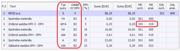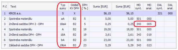 Typ sumy určuje smerovanie dokladu do daňového priznania k DPH, príp. do súhrnného výkazu DPH a záznamovej evidencie DPH.