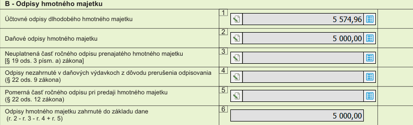 Tabuľka B v DPPO sa automaticky naplní podľa údajov uvedených na karte dlhodobého majetku.