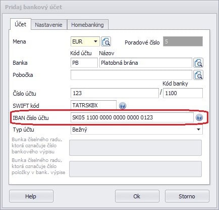 Bližšie informácie, ako má vyzerať a aké podmienky má spĺňať číslo účtu vo formáte IBAN, sa dozvieme v helpe po kliknutí na ikonu otáznika, prípadne využijeme IBAN konvertor na internete.