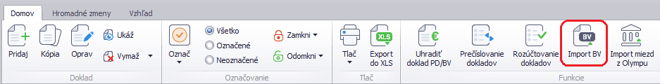 - cez menu Evidencia – Účtovné doklady – v záložke Domov – funkcia Import BV,