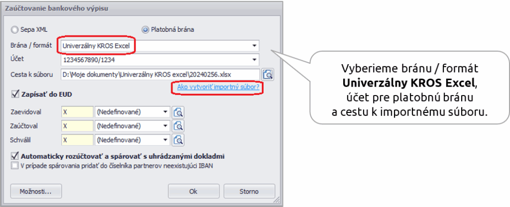 Pre import tých výpisov z platobných brán, ktoré nie sú v programe OMEGA podporené, napr. kuriéri, môžeme využiť funkciu importu cez Univerzálny KROS Excel.