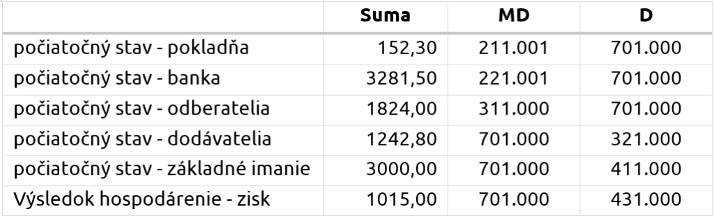1. Otvorenie účtovných kníh k 1. dňu účtovného obdobia