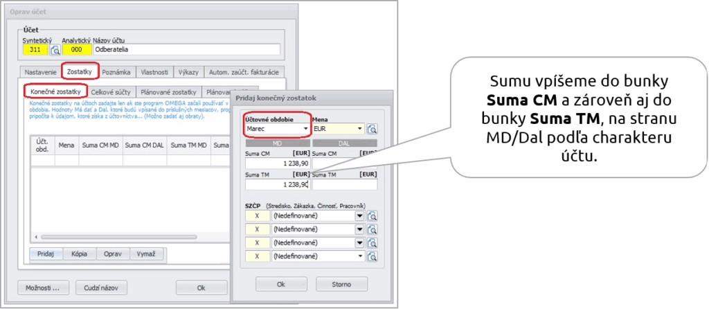 Ak prechádzame na program OMEGA v priebehu roka, počiatočné stavy účtov zadávame priamo cez účtový rozvrh.