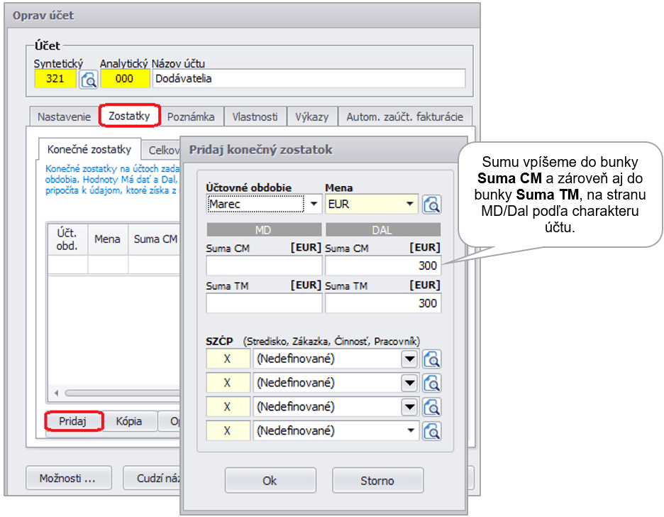 Ak prechádzame na program v priebehu roka, počiatočné stavy účtov zadávame priamo cez účtový rozvrh.