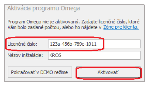 - Po spustení sa zobrazí okno, v ktorom zadáme licenčné číslo a zvolíme možnosť ,,Aktivovať“.