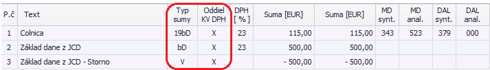 V prípade, že máme na colnej deklarácii uvedenú 19 % sadzbu DPH, doklad bude uvedený v riadkoch 18 a 22. Ak máme na colnej deklarácii uvedenú 5 % sadzbu DPH, doklad bude vstupovať do riadkov 18a a 22a.