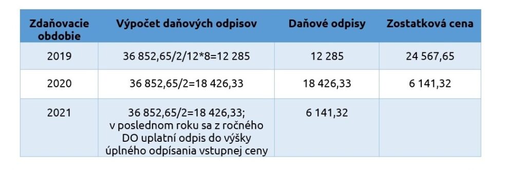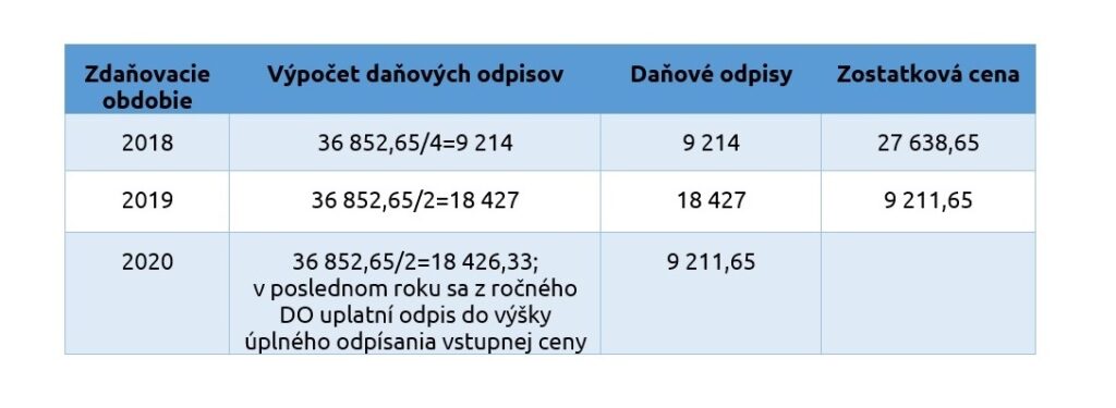 - výška daňových odpisov predchádzajúcich zdaňovacích období zostáva nezmenená,