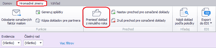 Ak už prechod nechceme opakovať, doklady môžeme preniesť aj v súčasnom roku cez funkciu Preniesť doklad z minulého roku.