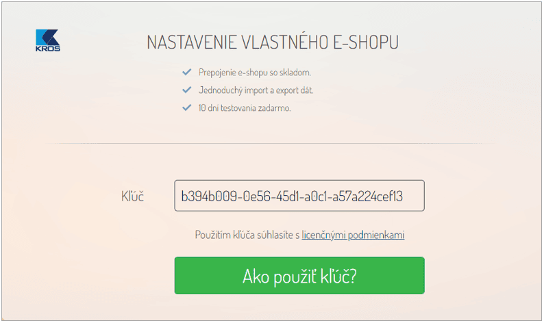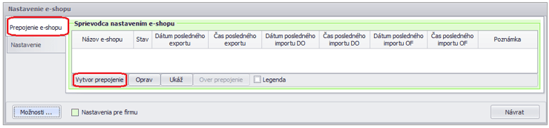 Stlačením tlačidla Vytvor prepojenie si spustíme Sprievodcu nastavením e-shopu, kde nastavíme: