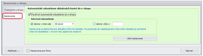 Uvedené nastavenie je platné iba pre aktuálne účtovné obdobie. Po prechode do nasledujúceho účtovného obdobia je potrebné interval odosielania v novom roku opätovne nastaviť.