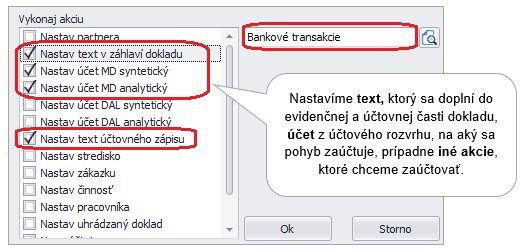 V časti Vykonaj akciu určíme, akým spôsobom má byť položka bankového výpisu zaúčtovaná.