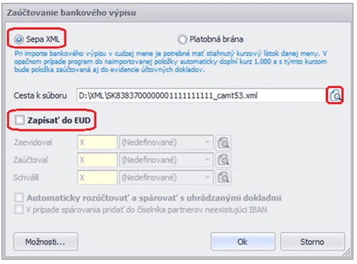 Pri vytvorení pravidla odporúčame najskôr výpis naimportovať a odkliknúť voľbu Zapísať do EUD, aby sme vedeli nastaviť pravidlo pre zaúčtovanie podľa jednotlivých položiek výpisu.