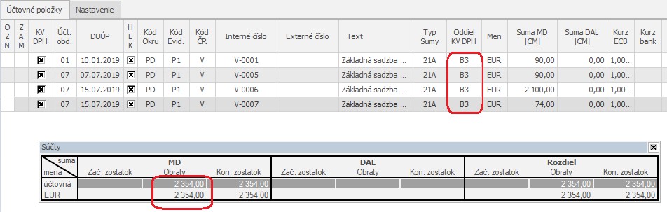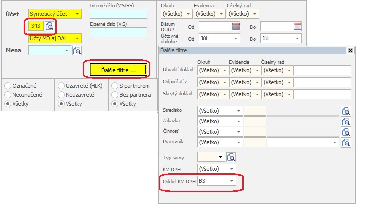 - cez Ďalšie filtre zadefinujeme Oddiel KV DPH B3.